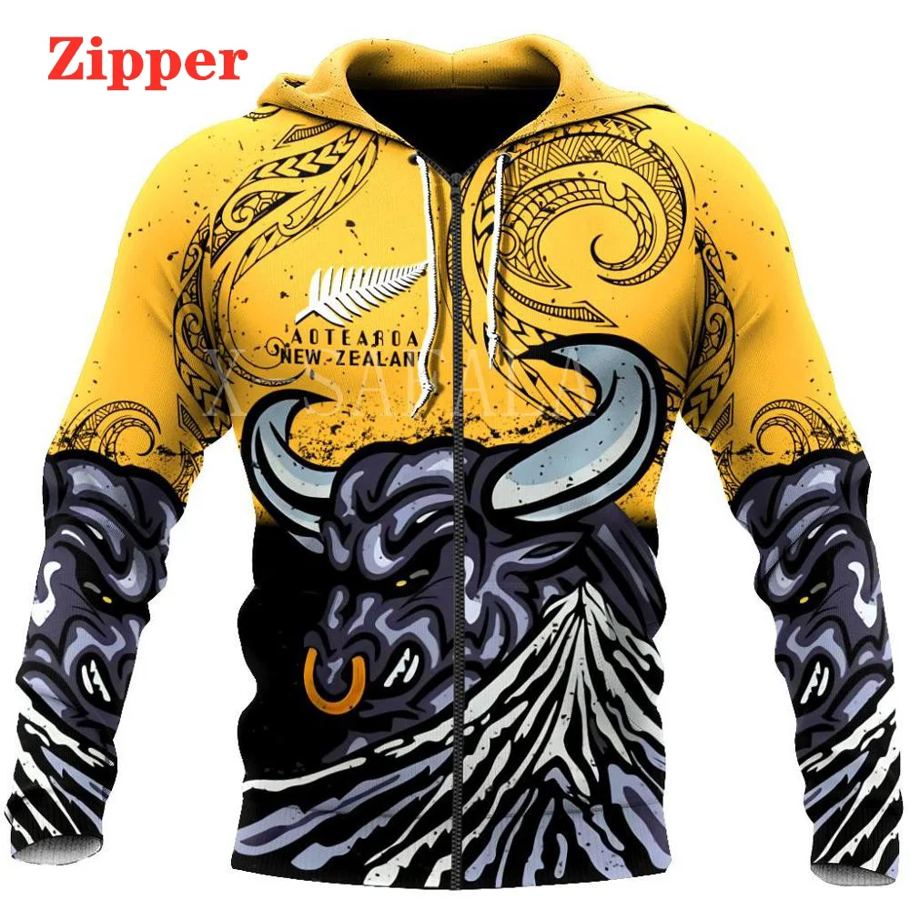 2021 Новая Зеландия Таранаки маори бык 3D печать толстовка мужская ...