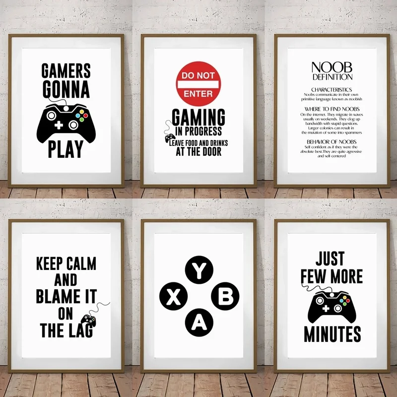 Набор из 6 постеров с принтами для игр, детская игровая комната, настенное украшение, комната, настенная Картина на холсте, без рамки
