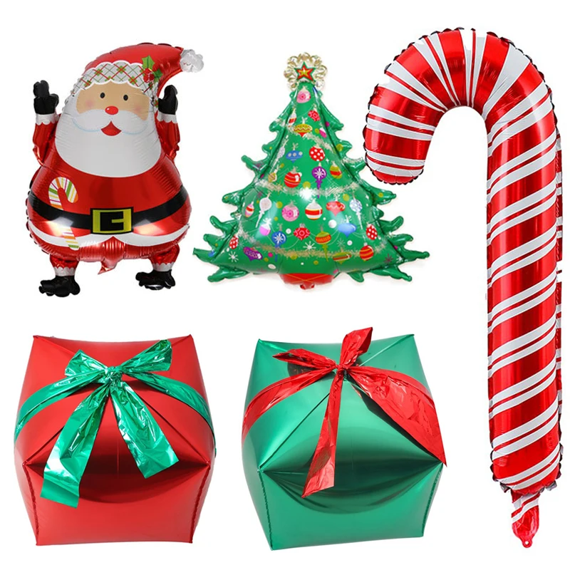 Большие Рождественские воздушные шары, блестящий леденец, Подарочная коробка, фольгированные воздушные шары для рождевечерние, новогодние украшения, детские подарки