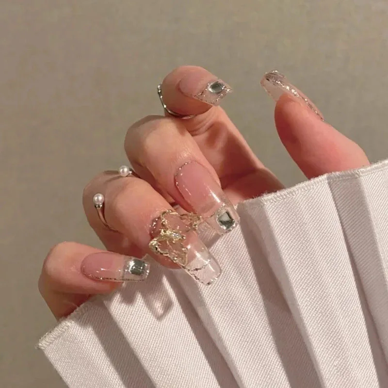 Накладные ногти, украшенные бабочками, съемные длинные абзацы, для ...