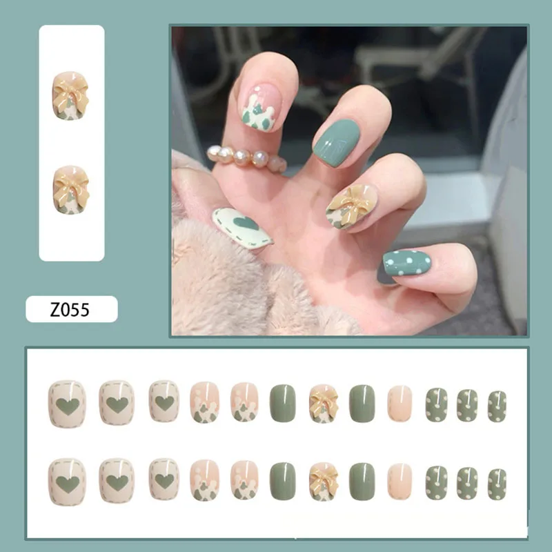 24 шт., накладные ногти зеленого цвета, блестящие короткие Акриловы...