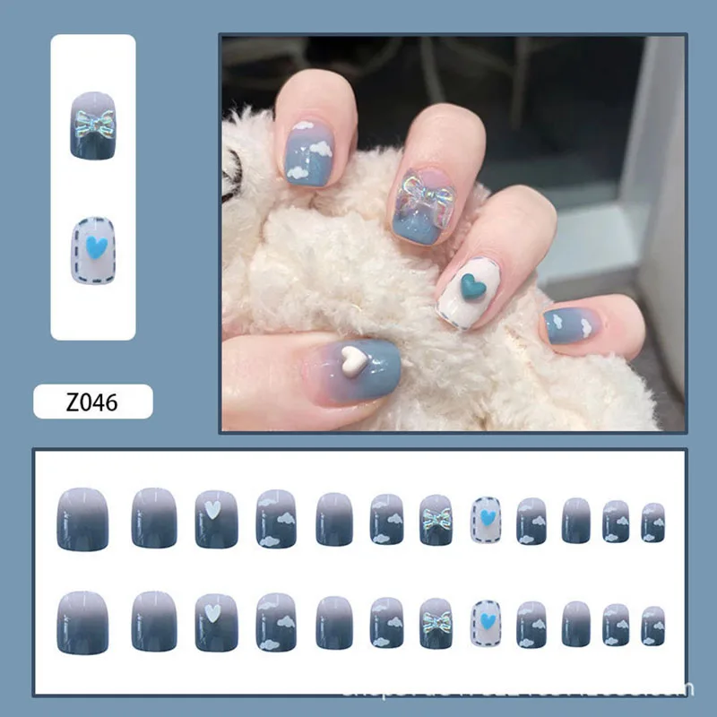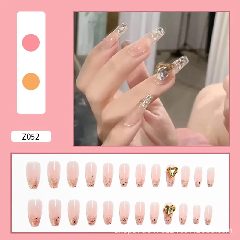 24 шт. блестящие накладные ногти длинные съемные золотые банты наклейки накладные ногти балерины с клеем красивые свадебные искусственные ногти