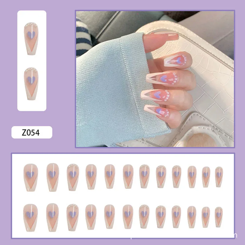 Накладные ногти, украшенные бабочками, 24 шт., съемный длинный абза...