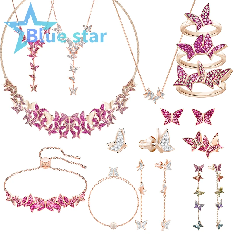 Рождественские подарки на Новый год 2022, Модный женский ювелирный магазин Swa, украшения из австрийских кристаллов, летающее ожерелье с красной бабочкой