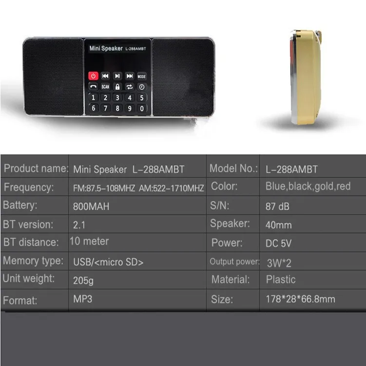 EONKO L-288AMBT супер бас Bluetooth AM FM радио с TF USB AUX Handsfree светодиодный дисплей