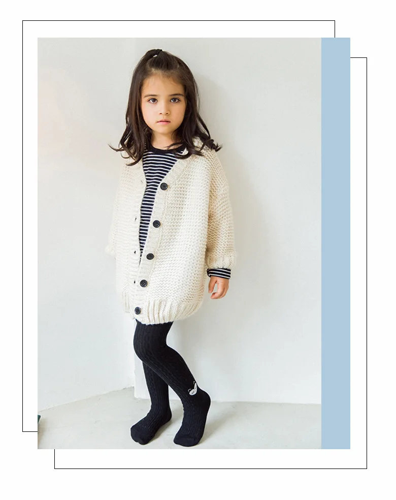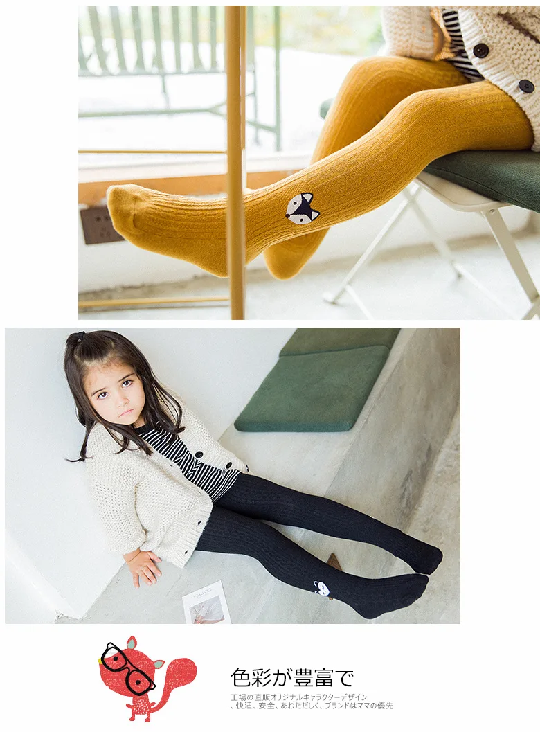 Весенняя одежда с милыми животными для маленьких девочек; Осенняя вязаная детская одежда; Хлопковые колготки с двойной иглой для девочек
