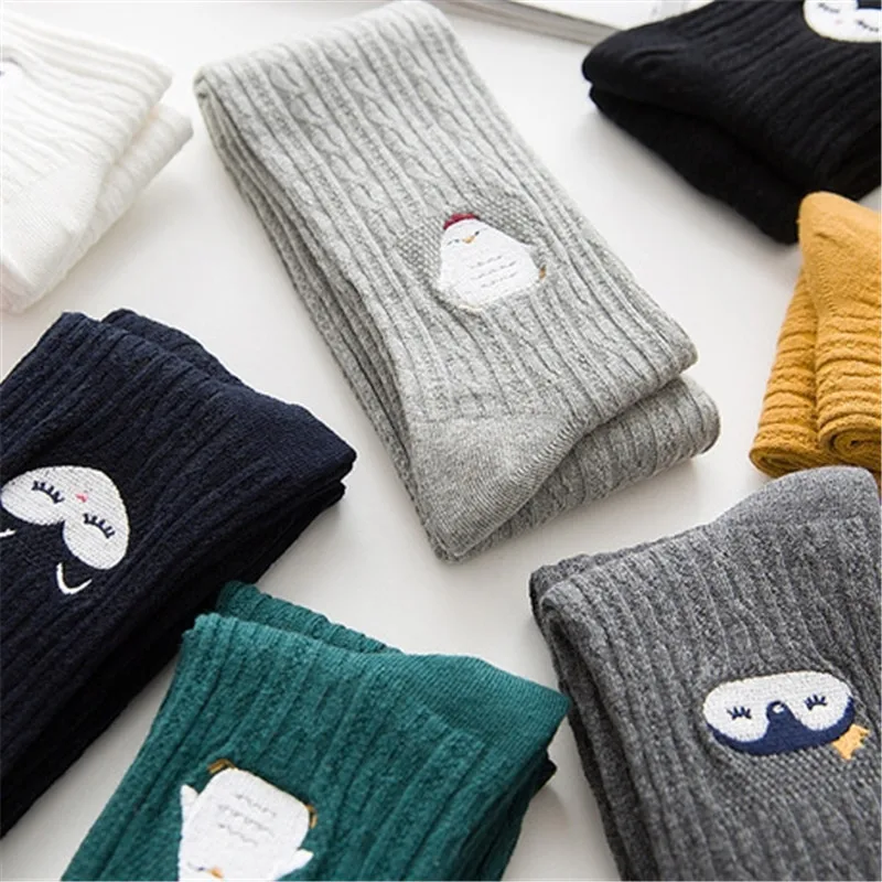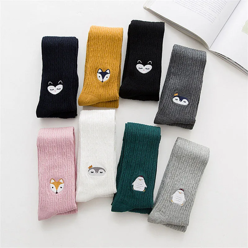 Милые Мультяшные колготки для девочек на весну осень хлопковые детские колготки трикотажные черные колготки с вышивкой для маленьких девочек 1-12 лет колготки теплые колготки для девочек калготки для девочек