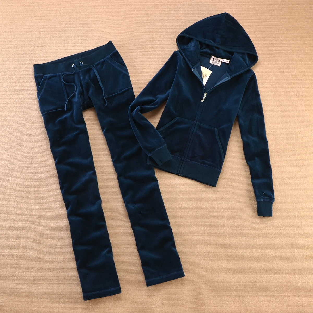 Бархатный спортивный костюм для женщин, женский спортивный костюм, куртка и брюки, Женский комплект большого размера, спортивный костюм с капюшоном, спортивный костюм от кутюр