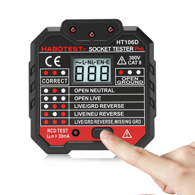 Тестер розеток индикатор напряжения HABOTEST HT106 Профессиональный цифровой электрический детектор напряжения в розетке ЕС и Великобритании Проверка цепи 30mA RCD
