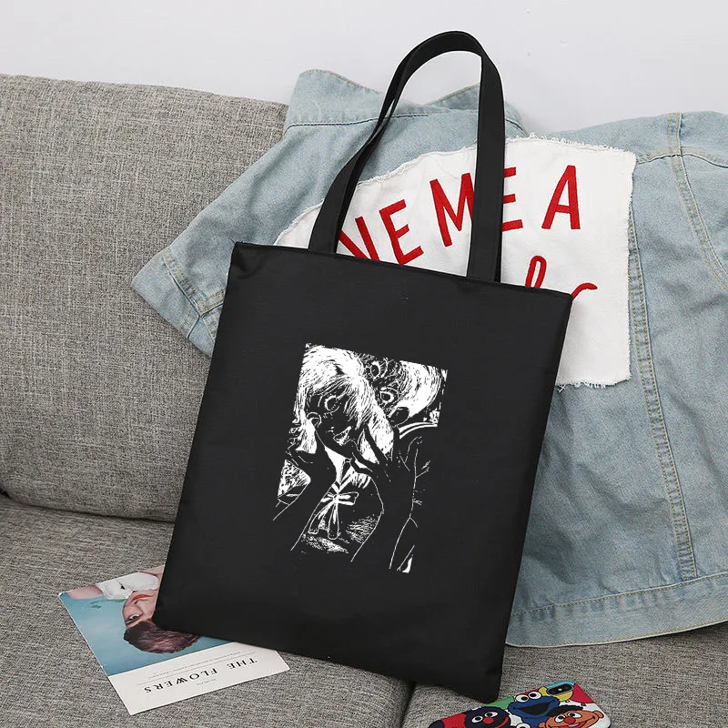 Сумки для покупок Junji Ito, женская сумка, аниме портфель, Холщовая Сумка-тоут, дизайнерские тканевые сумки, тканевая сумка с принтом для магазина