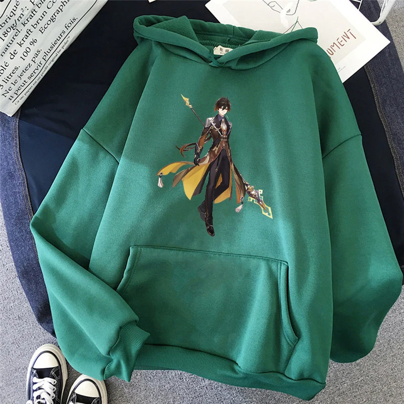 Женские толстовки с капюшоном Zhong Li с принтом Genshin Impact Аниме Толстовка для женщинмужчин Уличная одежда кавайная одежда футболки Свитшот Harajuku
