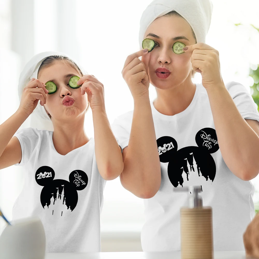 Новая футболка Disney с принтом замка, Лидер продаж, Модная Современная футболка Y2k с коротким рукавом, одежда для мамы и меня, популярная футболка с Микки