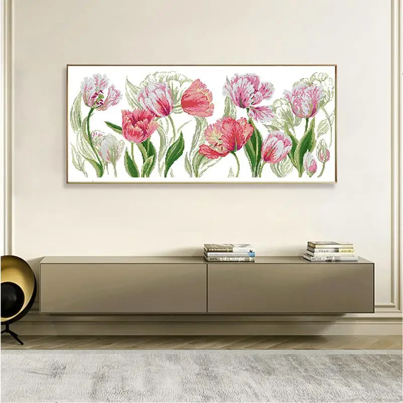 Набор для вышивки с принтом тюльпанов Joy Sunday, Набор для вышивки крестиком с цветочным рисунком 11CT 14CT, Набор для вышивки хлопковой нитью DMC