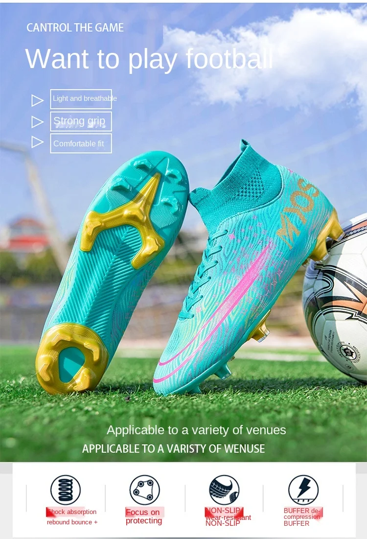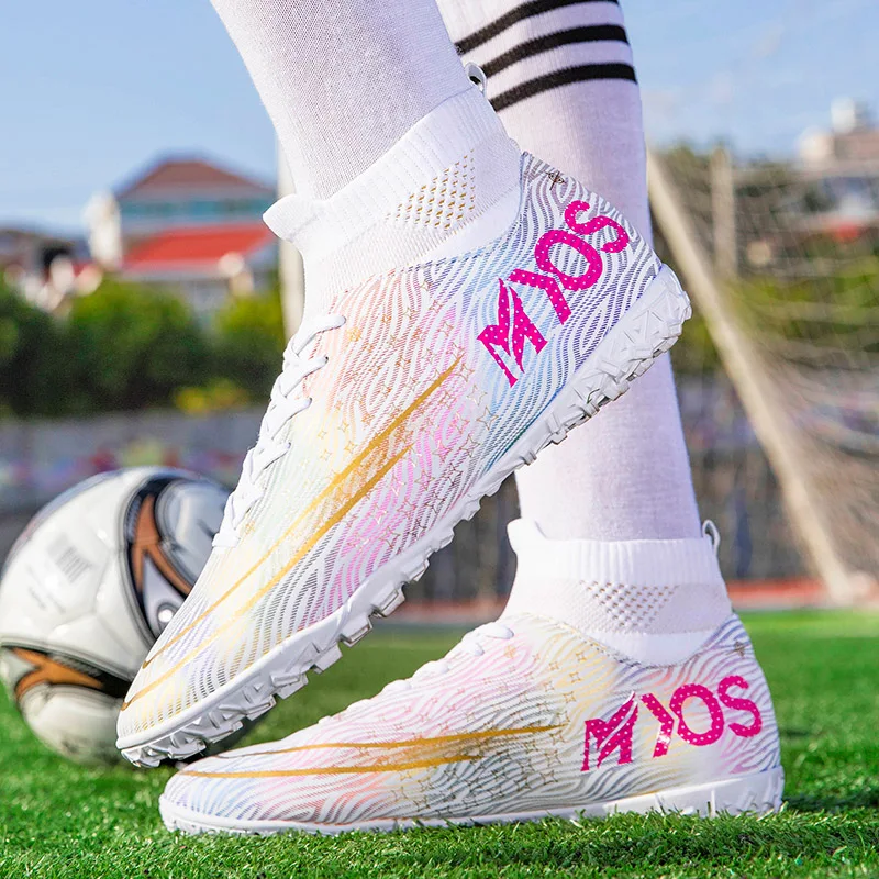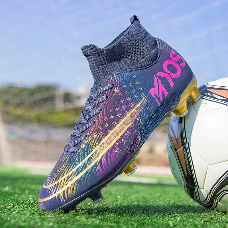 Новые Futsal Мужская футбольная обувь высокие футбольные бутсы для улицы газон FG Мужские шипованные кроссовки спортивная тренировочная обувь