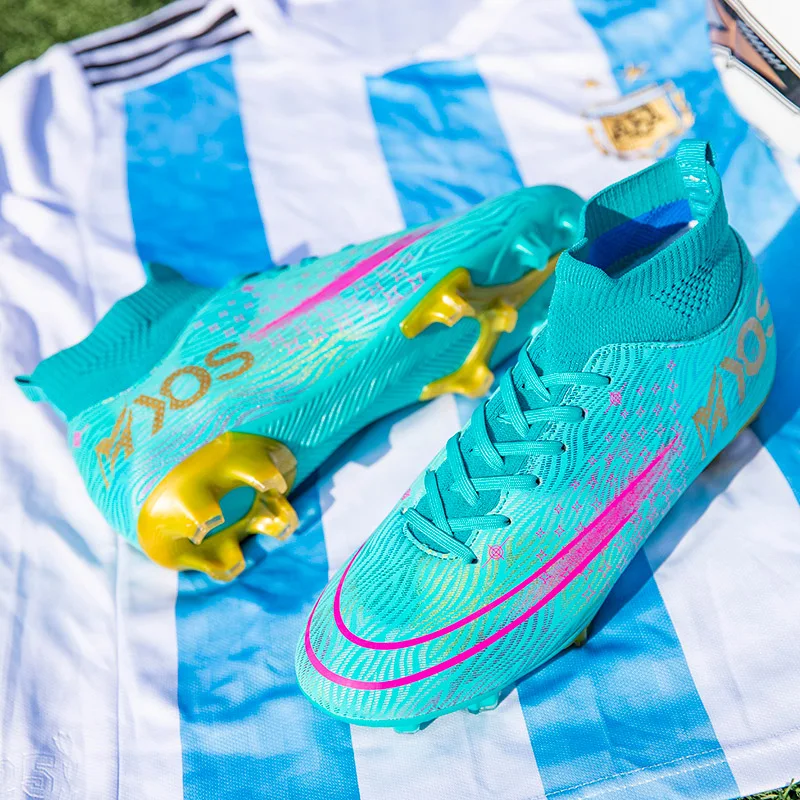 Новые футбольные бутсы для мужчин с высоким берцем, уличные футбольные бутсы FG, мужские кроссовки, спортивная тренировочная обувь chuteira Futsal