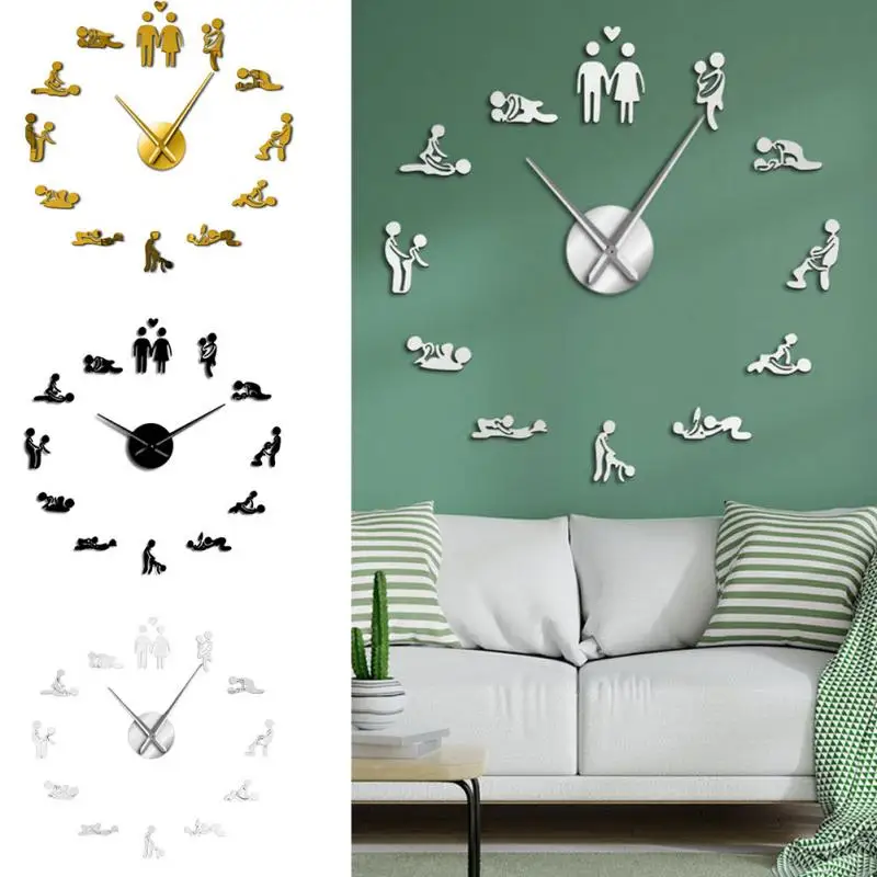 Секс любовь положение комнаты Настенные часы девичник игра сексуальная сделай сам для взрослых комнаты Декоративные гигантские настенные часы акриловое зеркало домашний декор
