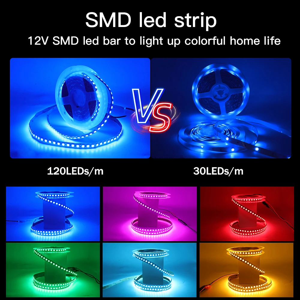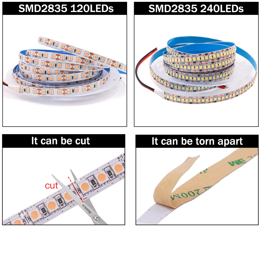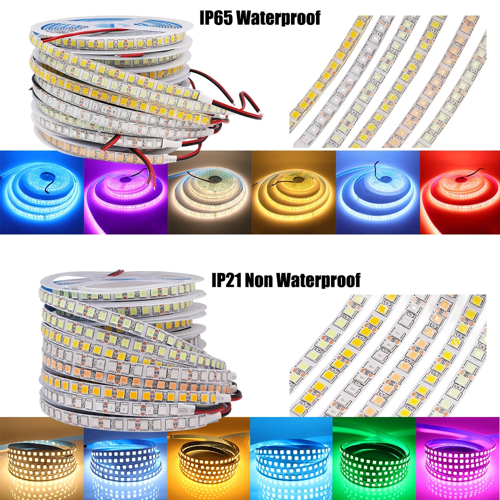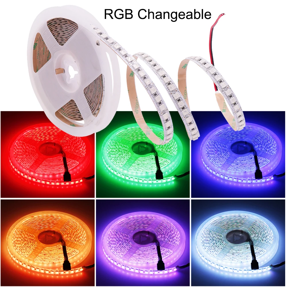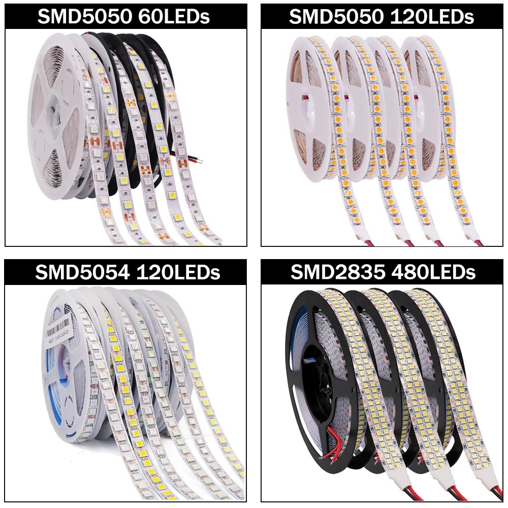 5050 RGB Светодиодная лента, 12 В постоянного тока, гибкая светодиодная лента 5054, 2835, 120 светодиодов, 240 светодиодов, светодиодов, водонепроницаемая светодиодная лента, шнур для домашнего декора, 5 м