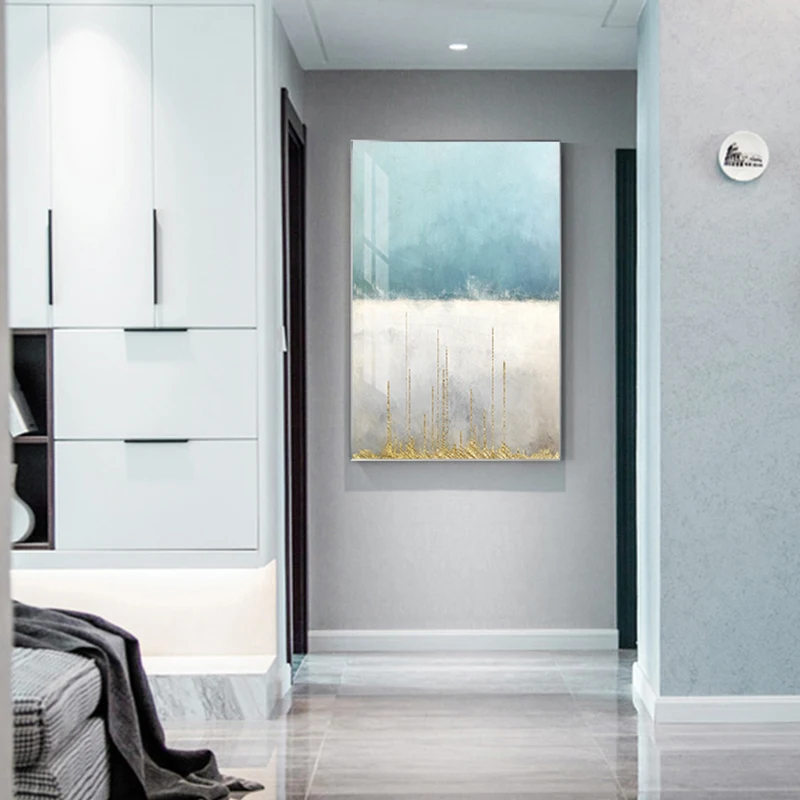Абстрактная Плавная синяя Золотая фольга, настенное искусство, Современная Картина на холсте, поп, декор интерьера, плакат для гостиной, домашний декор