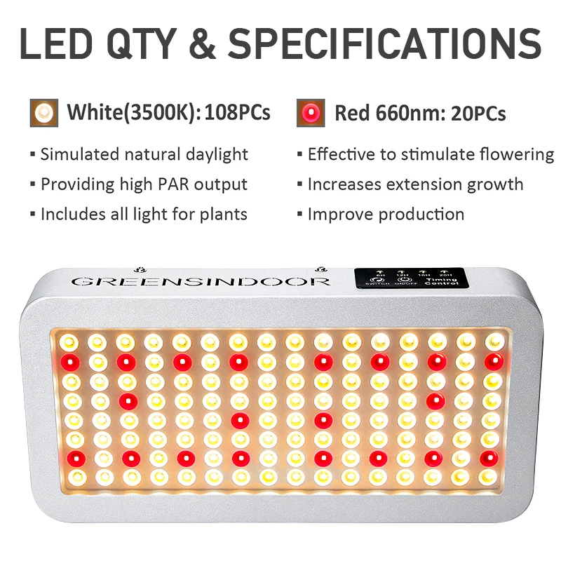 Светодиодная фитолампа с таймером Greensindoor, фитолампы для выращивания в помещении, светодиодная лампа полного спектра для выращивания растений