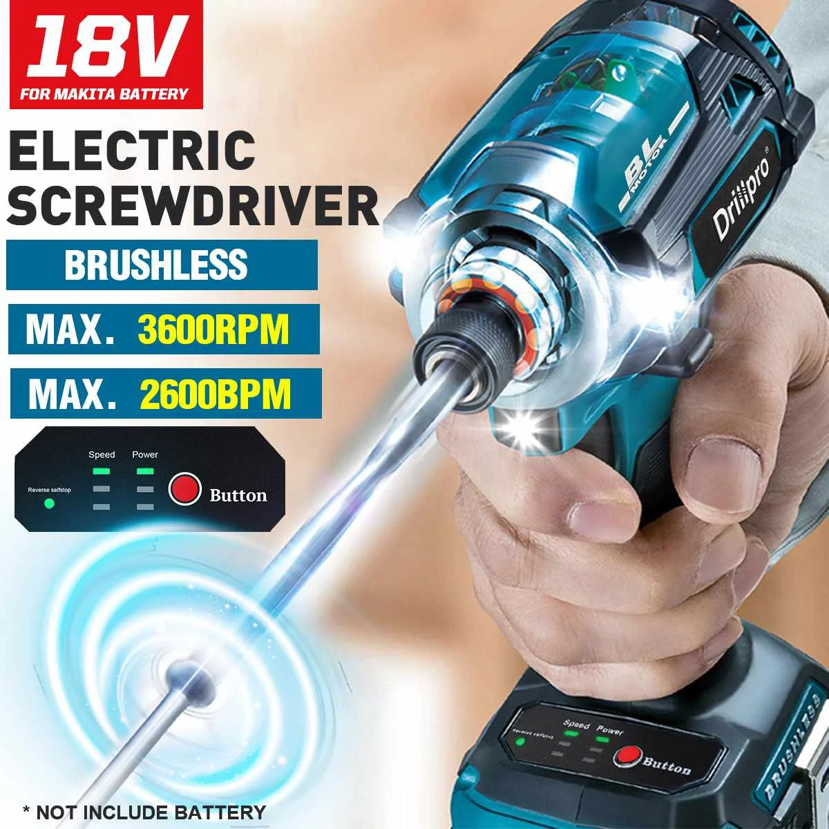 Беспроводная электрическая отвертка Drillpro, скоростной бесщеточный ударный гайковерт, дрель, электроинструмент + 3 светодиодных лампочки для батареи Makita