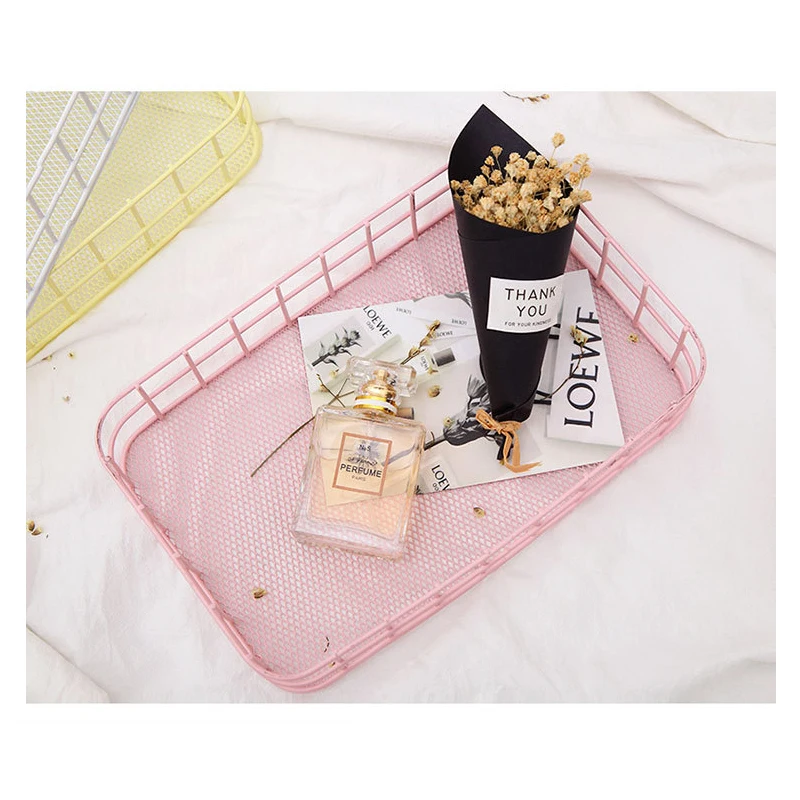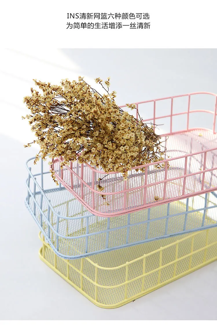 Прямоугольная металлическая корзина в скандинавском стиле, косметический Органайзер, корзина и Парикмахерская корзина для отделки различных и офисных предметов