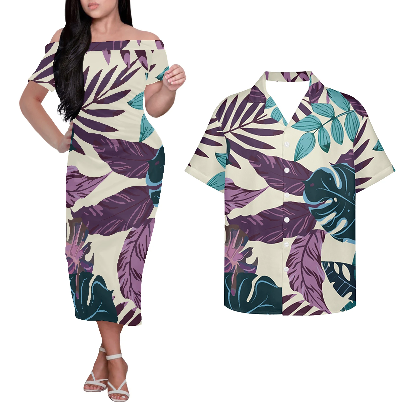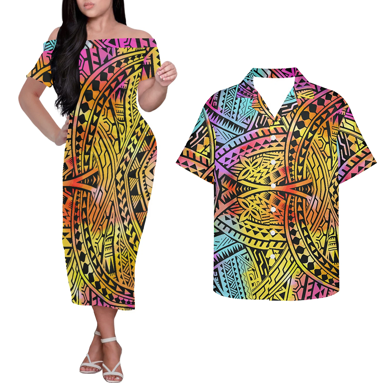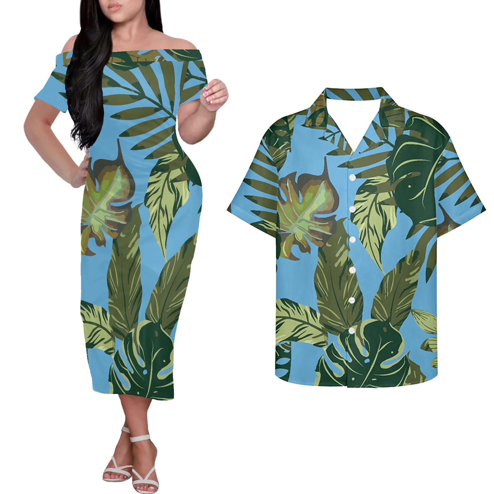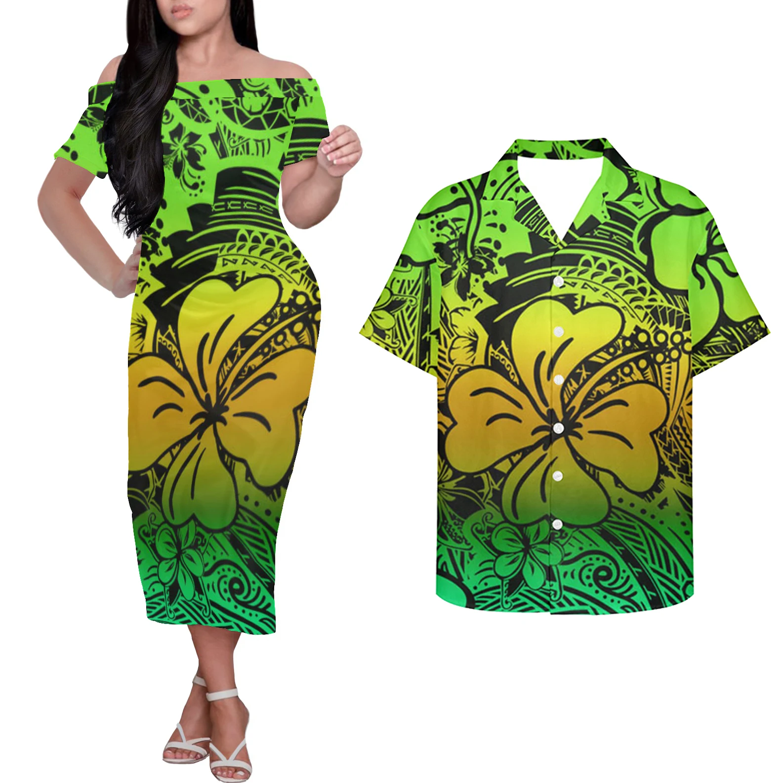 Летнее Повседневное платье HYCOOL в гавайском стиле с открытыми плечами для вечерние, полинезийское платье-макси с этническим принтом, индивидуальный логотип, парная одежда