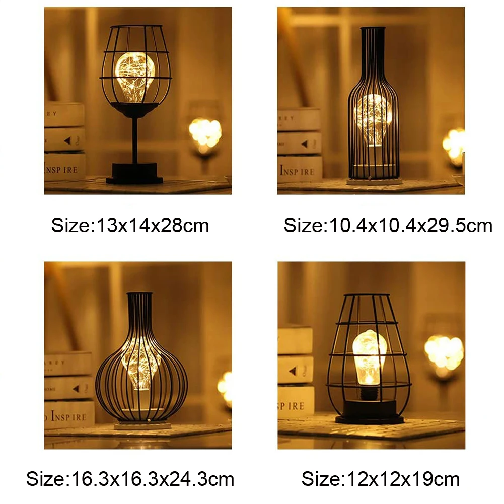 Железный Ночной светильник, винтажный металлический провод настольная лампа, черный ретро промышленный железный металлический провод корзина Клетка Стиль Ночной светильник абажур Настольный светильник для прикроватного стола современные декоративные
