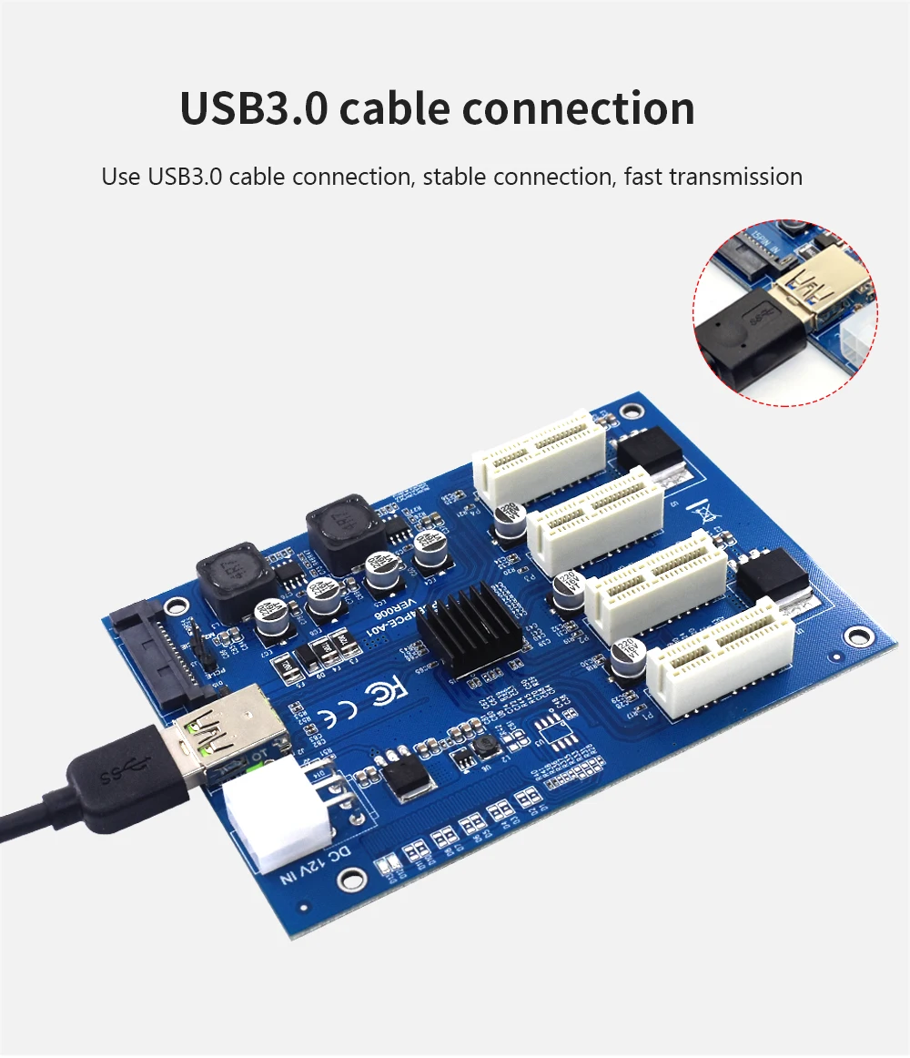 Адаптер-концентратор TISHRIC PCIE 1-4 Riser 009s, хаб с усилителем и слотом Pci Express 1x до 16x USB 3,0 для майнинга BTC ETH