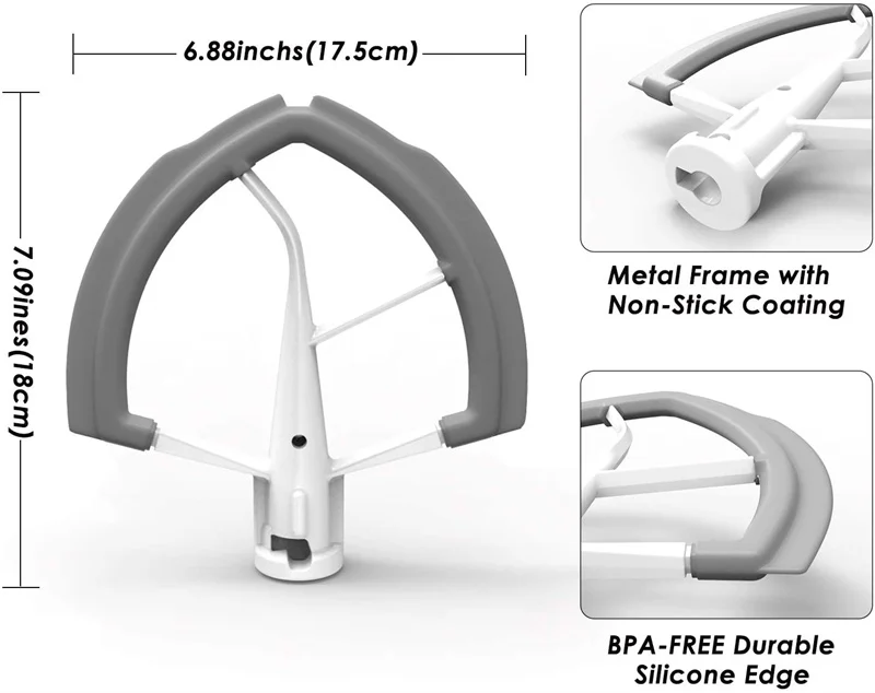 [Полезный шпатель] с гибким краем, он практически избавляется от нарастания теста сбоку и необходимости ручного скребка для смешивания. Нет необходимости в дополнительном инструменте, плоская лопатка также может быть двойной в качестве лопатки.