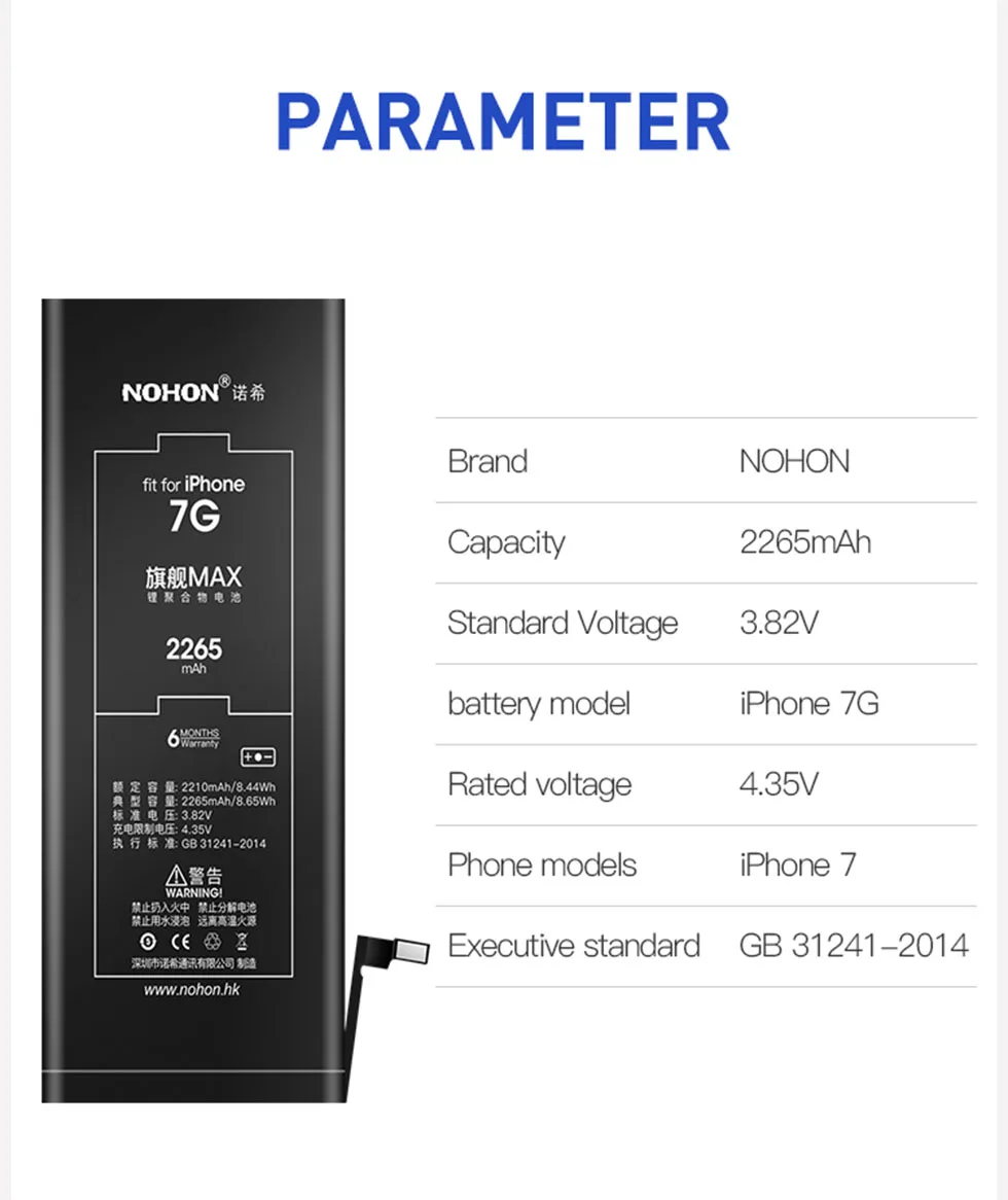 Новый аккумулятор NOHON для iPhone 7, 8, 6, 6S, 5 5S X, XR, XS, SE,...