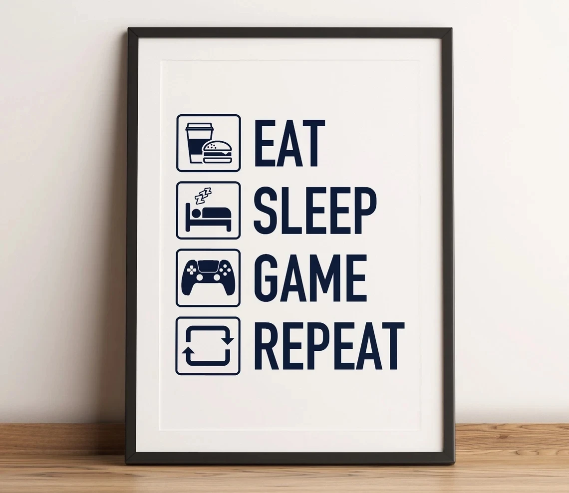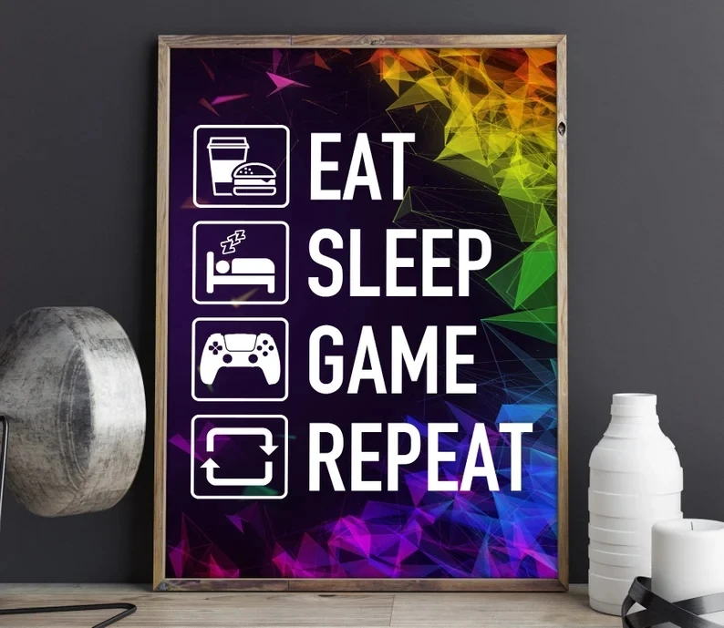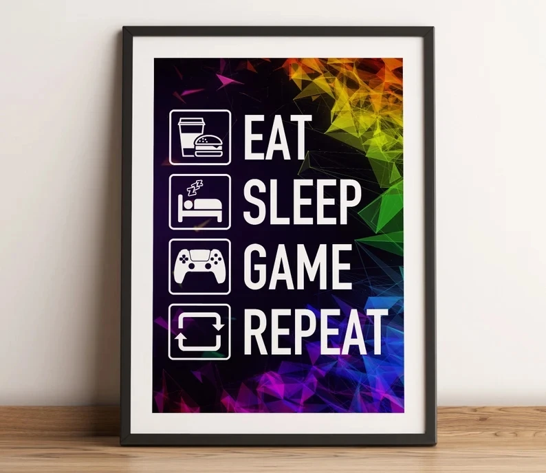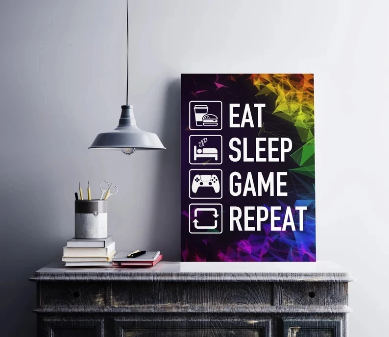 Картина Eat Sleep с повторяющимся рисунком, игровые принты, игровые подарки, игровой постер, игровая настенная Картина на холсте без рамки