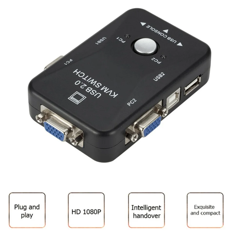 Квм-переключатель USB 2,0, 1920*1440, разветвитель VGA, 2 порта с д...