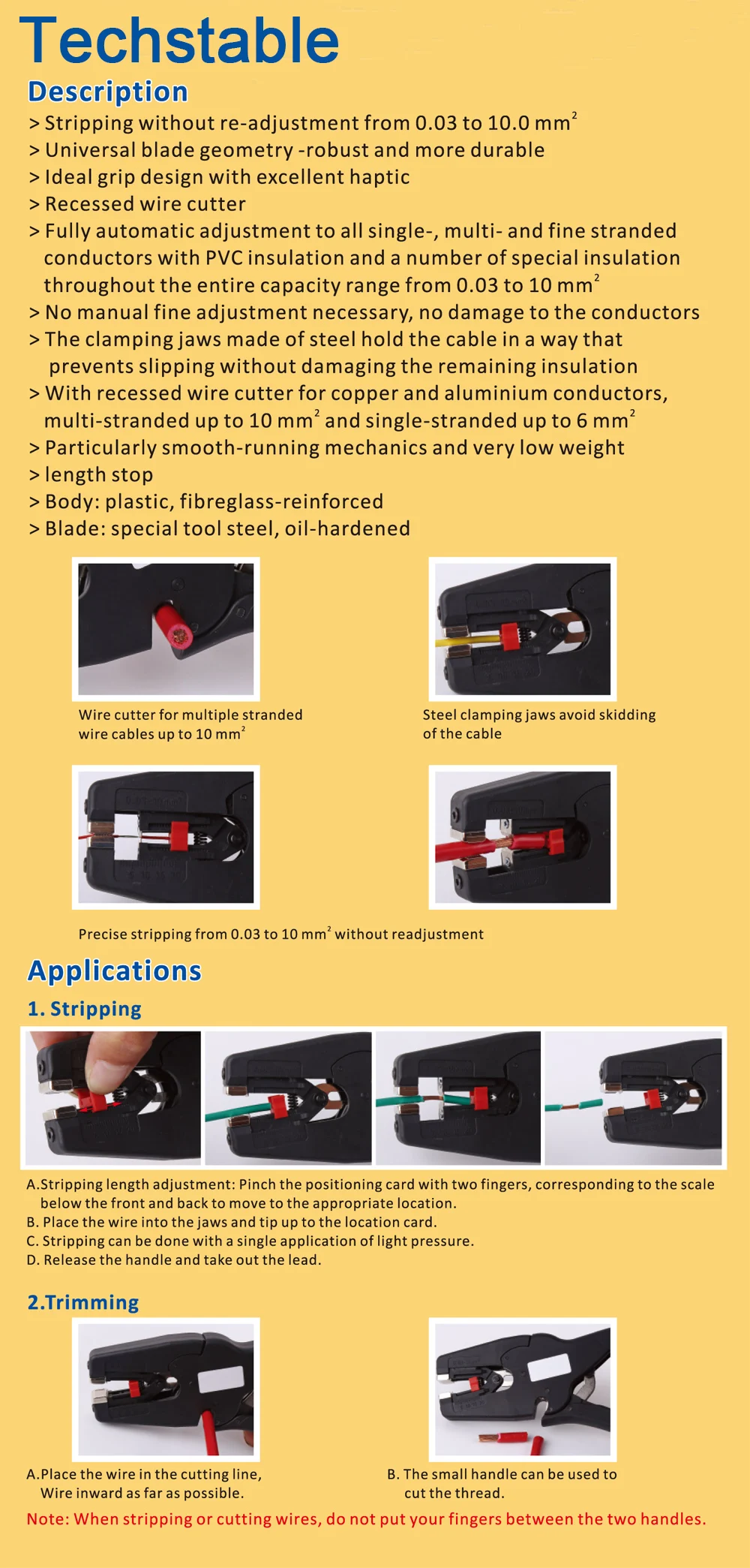 Регулируемая изоляционная лента для зачистки проводов диаметром 0,03-10 мм2, Высококачественная резак для зачистки проводов с плоским носом