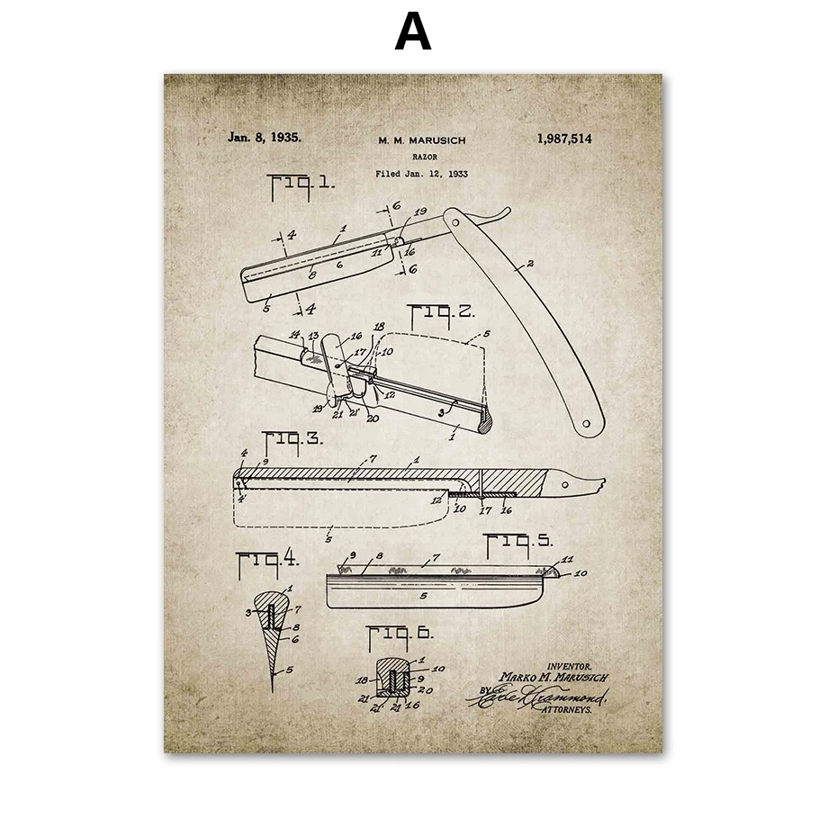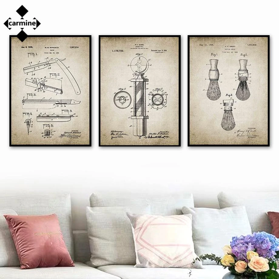 Винтажные инструменты для парикмахерской, холст, стена, искусство, искусство, ножницы, схема, печать картин, Ретро стиль, плакаты и принты, домашний декор