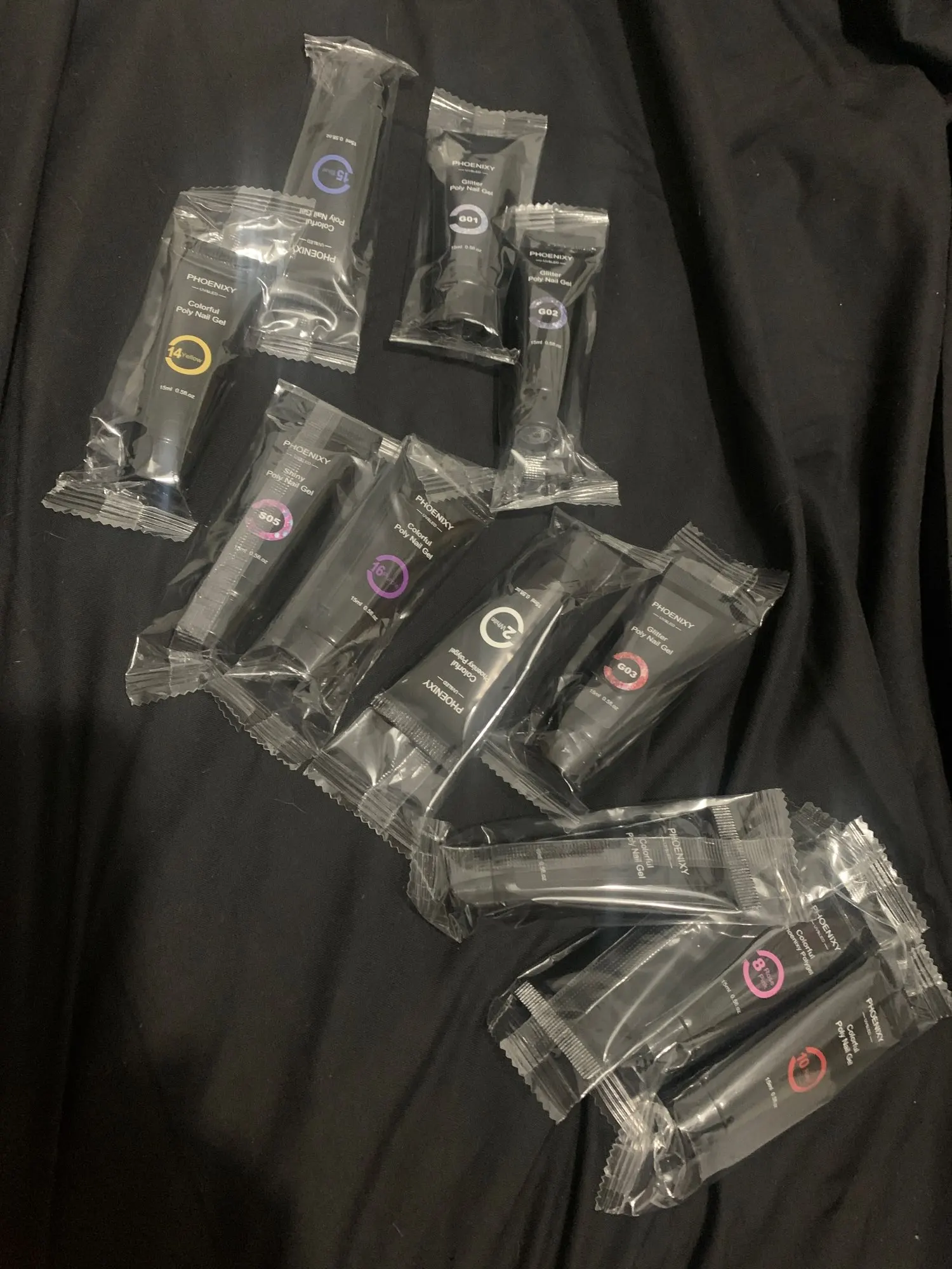 Поли гели отлично работают и j любовь, различные цвета, и они были доставлены примерно за месяц до предполагаемой даты! Так что только три недели!