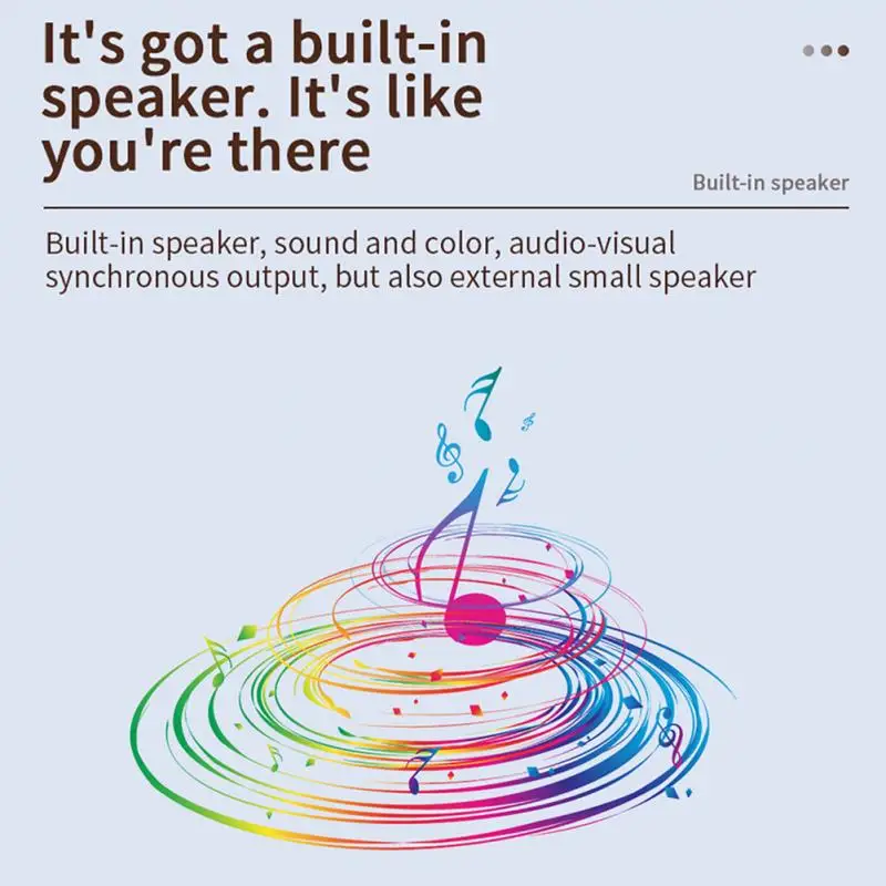 Встроенный динамик и большой размер проекции позволяют детям наслаждаться их счастливым мультяшным временем.
