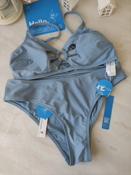 CUPSHE, однотонный синий топ бикини с круглым вырезом, с вырезами, ...