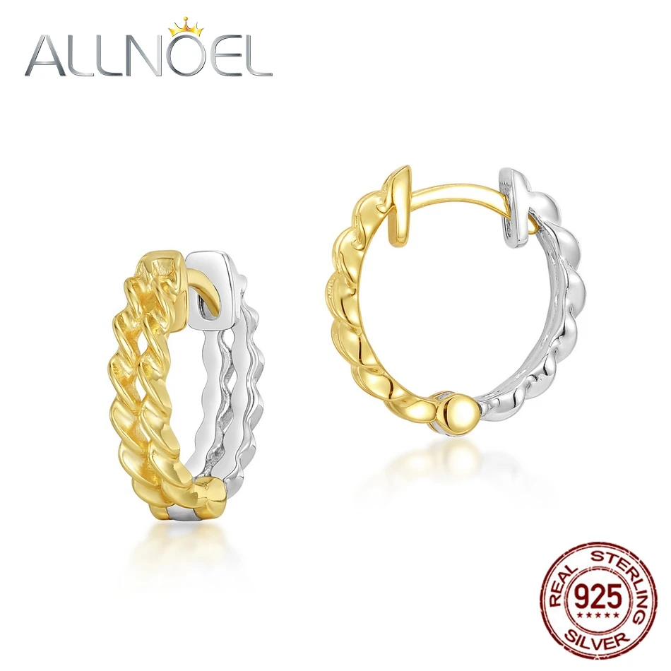ALLNOEL, настоящее покрытие, золотые серьги-кольца, Стерлинговое Серебро 925 пробы, Женские Двухцветные кольца для девушек, Изящные Ювелирные изделия, новинка 2022