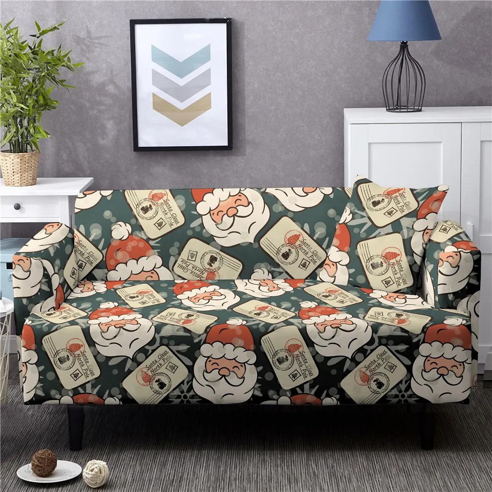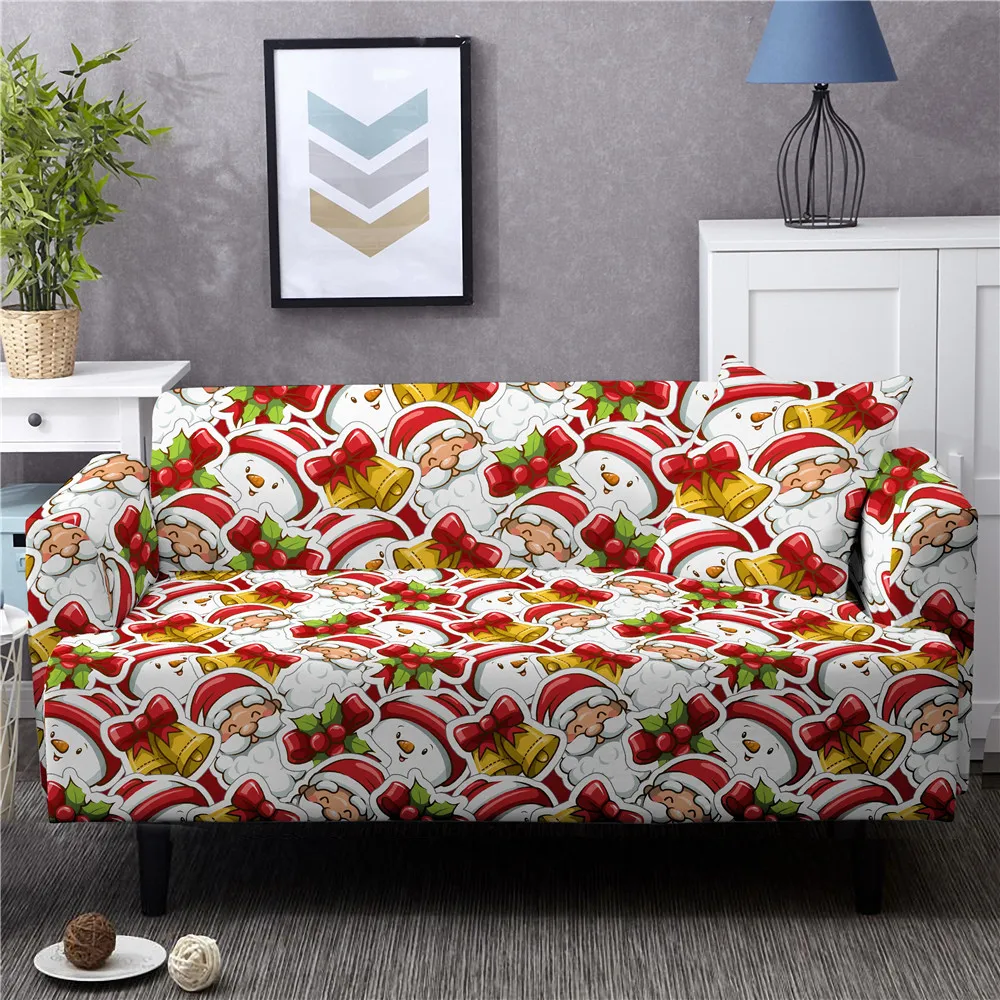 Рождественский чехол для дивана, эластичный чехол для углового секционного дивана с Санта-Клаусом