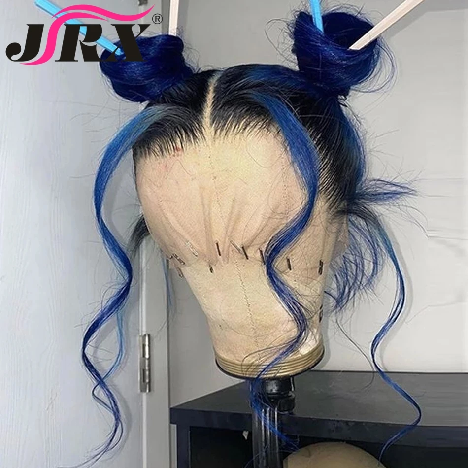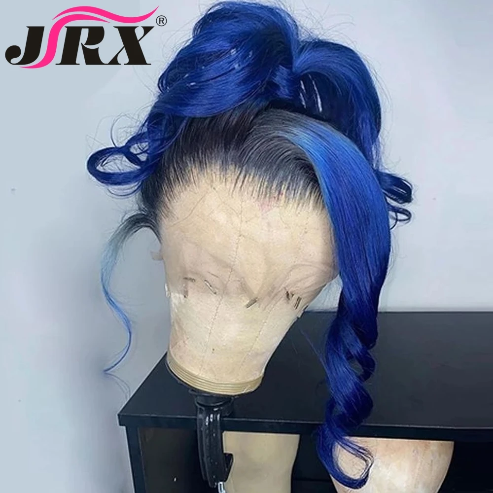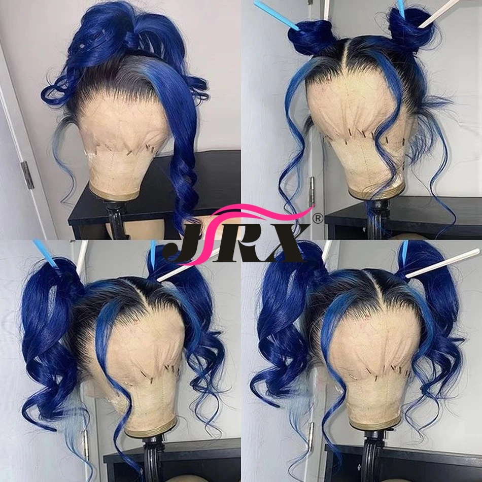 Бесклеевая объемная волна, Т-образная часть, кружевные человеческие волосы, парики, перуанские, Омбре, темно-синие, цветные человеческие волосы, парики Пони, волосы Remy для черных женщин