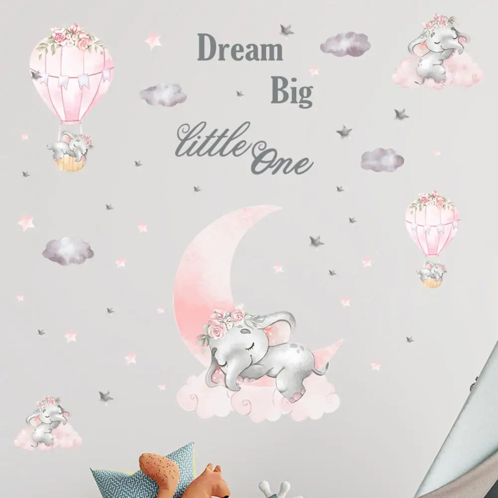 2 шт.компл. DIY наклейки на стену, мультяшный розовый слон, самоклеящиеся обои из ПВХ для детской фотографий