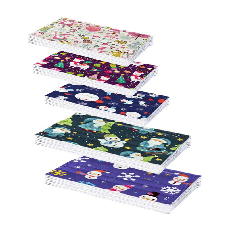 50 шт. Рождественская медицинская маска для взрослых, 3-слойная цве...