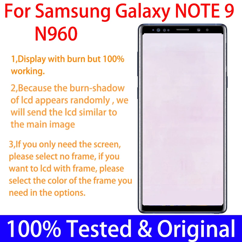 Оригинальный сенсорный ЖК-экран NOTE9 с Amoled-экраном для Samsung Galaxy Note 9 N960, дигитайзер, запасные части, дисплей N960, рамка