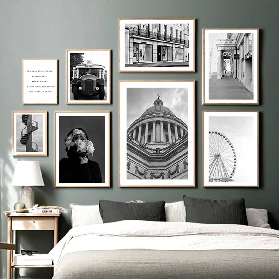 Розовый Париж башня подоконник цветок Автомобиль Велосипед скандина...