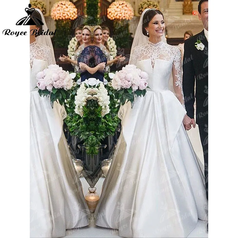 Женское свадебное платье с юбкой-годе, длинным рукавом и цветочным ...
