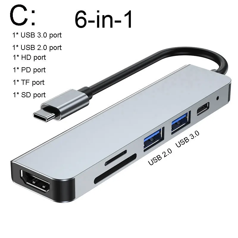 (C) 6-в-1 1 * USB3.0 + 1 * USB2.0 + 1 * USB-C PD + 1 * TF-1 шт. + SD + 1 * HDMI-compatible4k