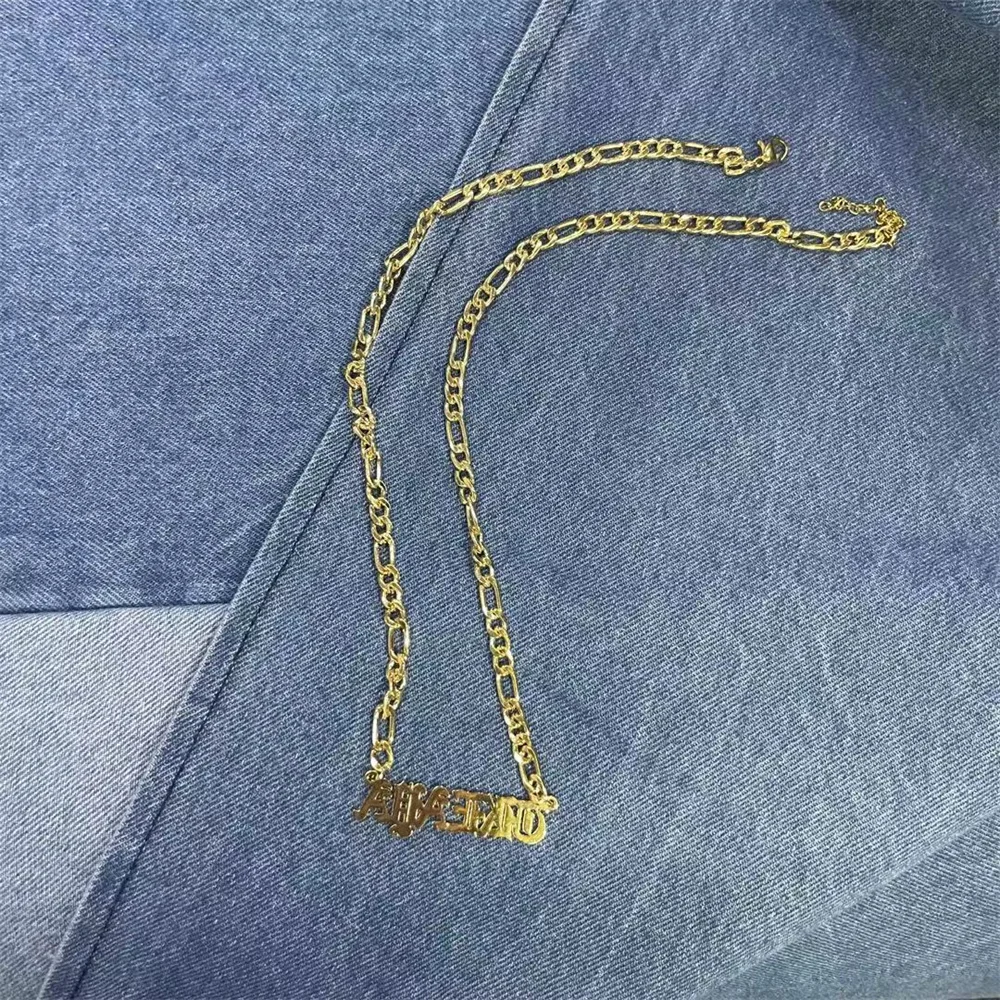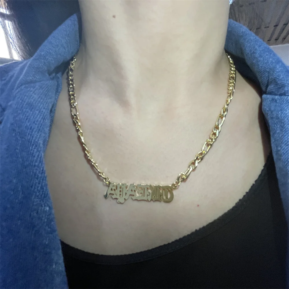 Название: заказное имя цепочка Фигаро Ожерелье Персонализированная именная табличка из нержавеющей стали для женщин модные ожерелья подарок на день рождения ювелирные изделия