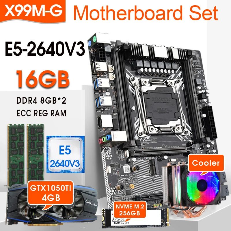 X99M-G материнская плата E5 2640 v3 CPU 2 шт. x 8 ГБ = 16 ГБ DDR3 2133 МГц память ECC REG Set combos 256 ГБ M.2 SSD GTX1050TI 4 Гб с кулером