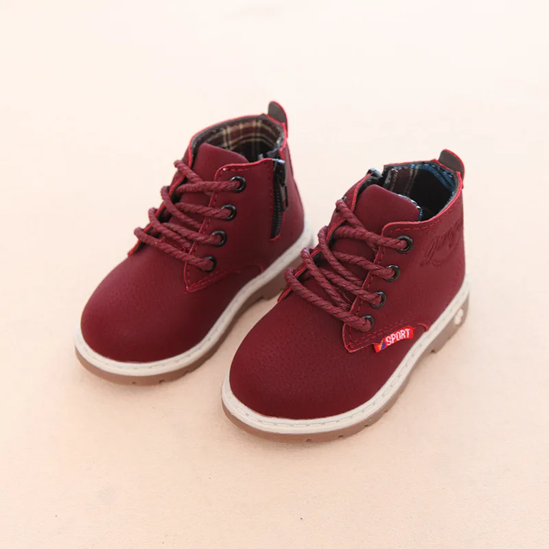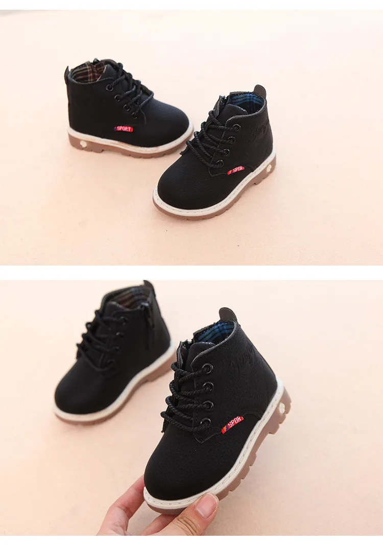 Детская повседневная обувь, Осень-зима, Ботинки Martin, модная кожаная обувь для мальчиков, мягкие Нескользящие ботинки для девочек 21-30, спортивная обувь для бега
