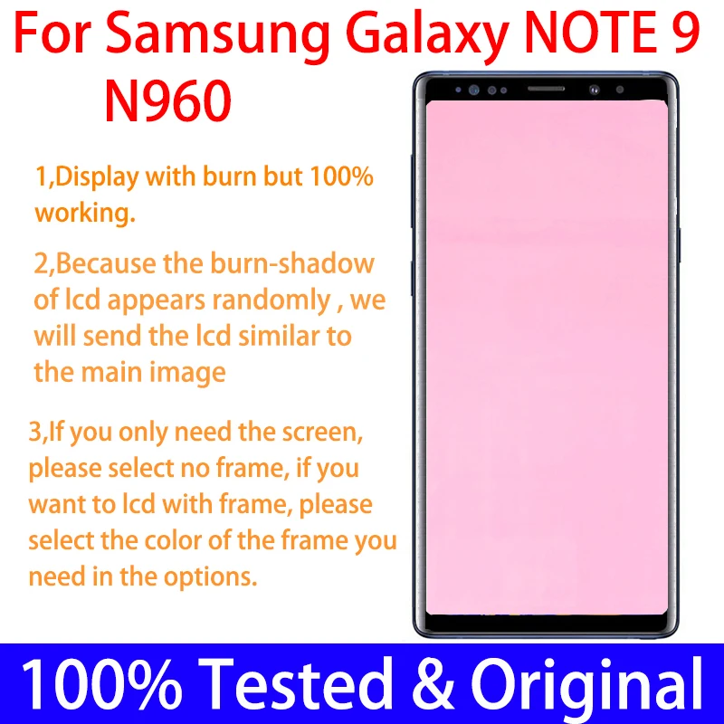 Оригинальный сенсорный ЖК-экран NOTE9 N960 Burn Shadow Amoled для Samsung Galaxy Note 9 N960, дигитайзер, запасные части, дисплей с рамкой